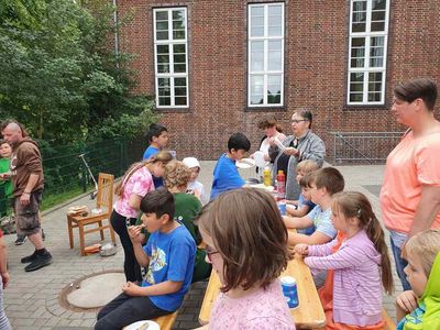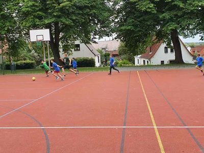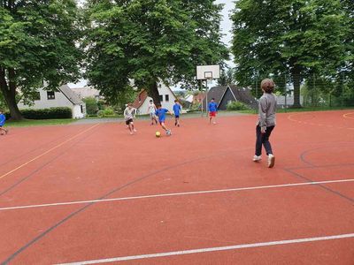 Wie in jedem Jahr nahmen wir am Fußballturnier teil. Alle Kinder, viele Eltern und Geschwisterkinder waren dabei. Gastgeber ist das Kinderparadies. Jede/r der/die möchte, spielte mit. Einen Pokal haben wir auch schon gewonnen.